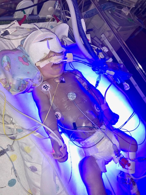 -For our hearts, as parents- seeing a preemie ICU bed with many tubes, lights and machines. Seeing Aaron on Facetime only right now and missing him so much.