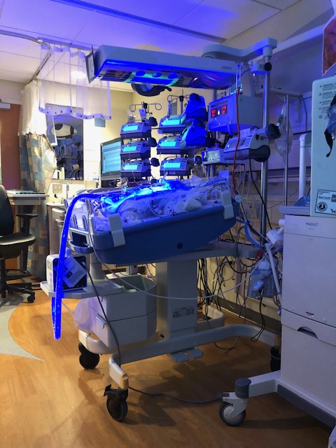We then went to visit Caleb in the CICU. One thing I know I am going to have to work on and pray about is the PTSD I feel when approaching his room. Our experience the day after birth when checking in on him and hearing Dr. P discuss mortality left me very raw. I have been working to overcome that and remember that God is in control of the plan for that sweet baby. We walked in and saw that Caleb has a new light to help with jaundice and his bilirubin levels. His blood-gas levels are improved (they monitor this for oxygen and carbon dioxide in the blood). They gave him lasix to help him pee more and get rid of the extra fluid in his body from surgery and recovery. This made his blood pressure drop a bit last night so they gave him a little epinephrine to help support his blood pressure. This helped his body process the lasix much better today! They noticed some bruising in his belly and wanted to get an x-ray to make sure there wasn’t an issue with the intestines, infection, etc. and they actually got to look at it when we were there and saw that it was normal. This could just be from the blood thinners he is on, etc. We are thankful it didn’t show something alarming. Today he gets the pericardial drain out! This was the drain that was used to remove pooling blood around his heart when it was knicked somehow during the initial surgery. There has not been any more blood to collect around the heart so they get to remove that. He also gets to be taken off of antibiotics today. Tomorrow, they are going to lessen his sedation to see how he does and to see if his stable vitals continue to remain stable (even though it is with a lot of support). They want to go at his pace and they want to make sure that his body’s only responsibility right now is to grow, to relax and recover.
